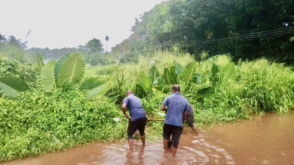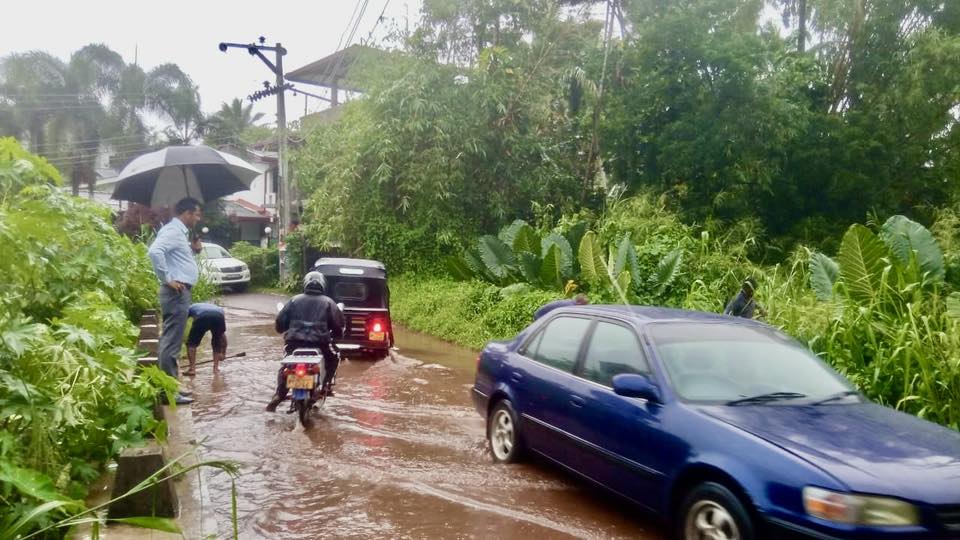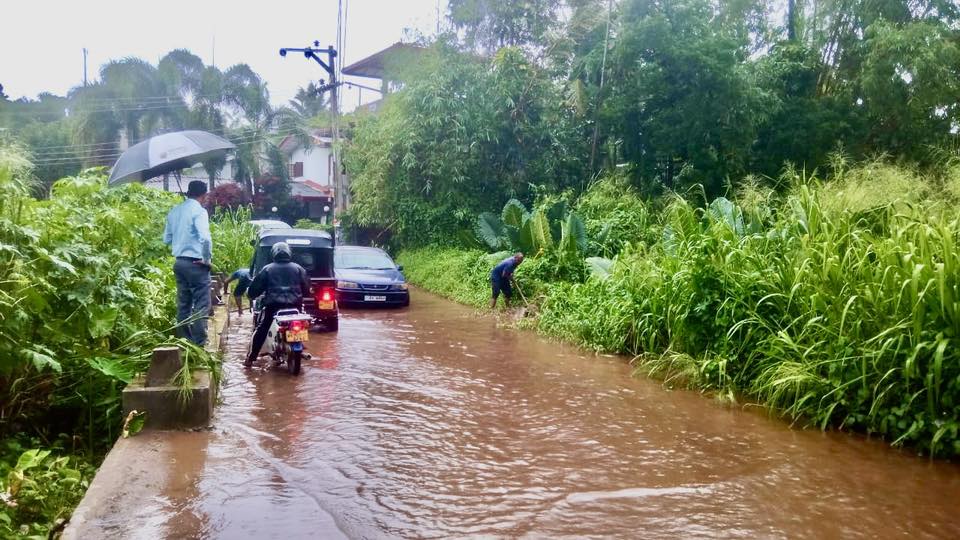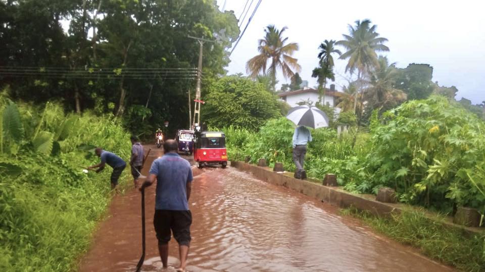 ඇදහැලුන වර්ෂාව හේතුවෙන් ගෝණමඩිත්ත මාර්ගයේ වෙල අසල වැසි ජලය රුස් වී වාහන ගමනාගමනයට සහ පදකයින් හට සිදු අපහසුතාවය කැස්බෑව නගර සභා සේවක මහතුන් මැදිහත් වී නිරාකරණය කිරීම.
